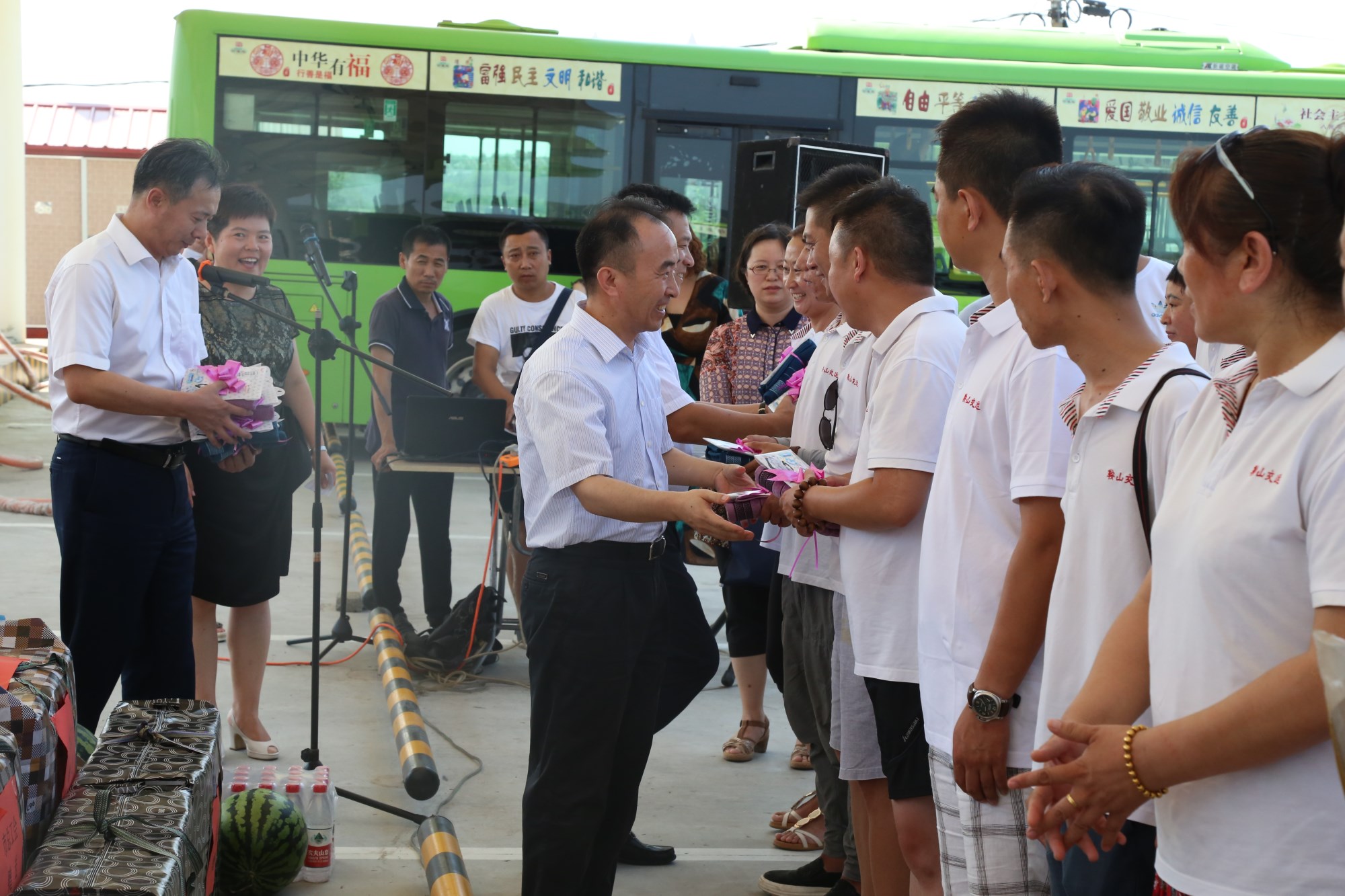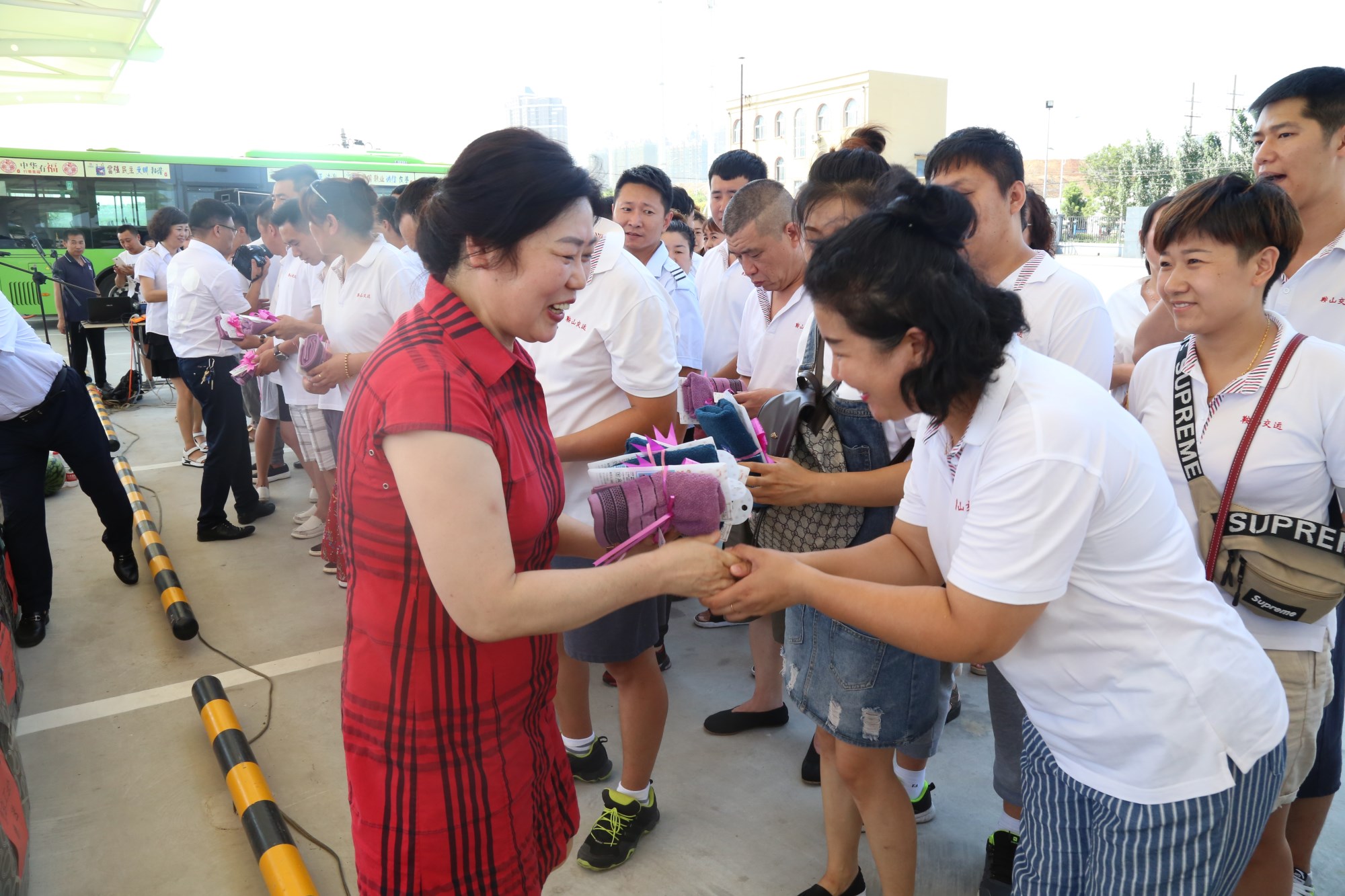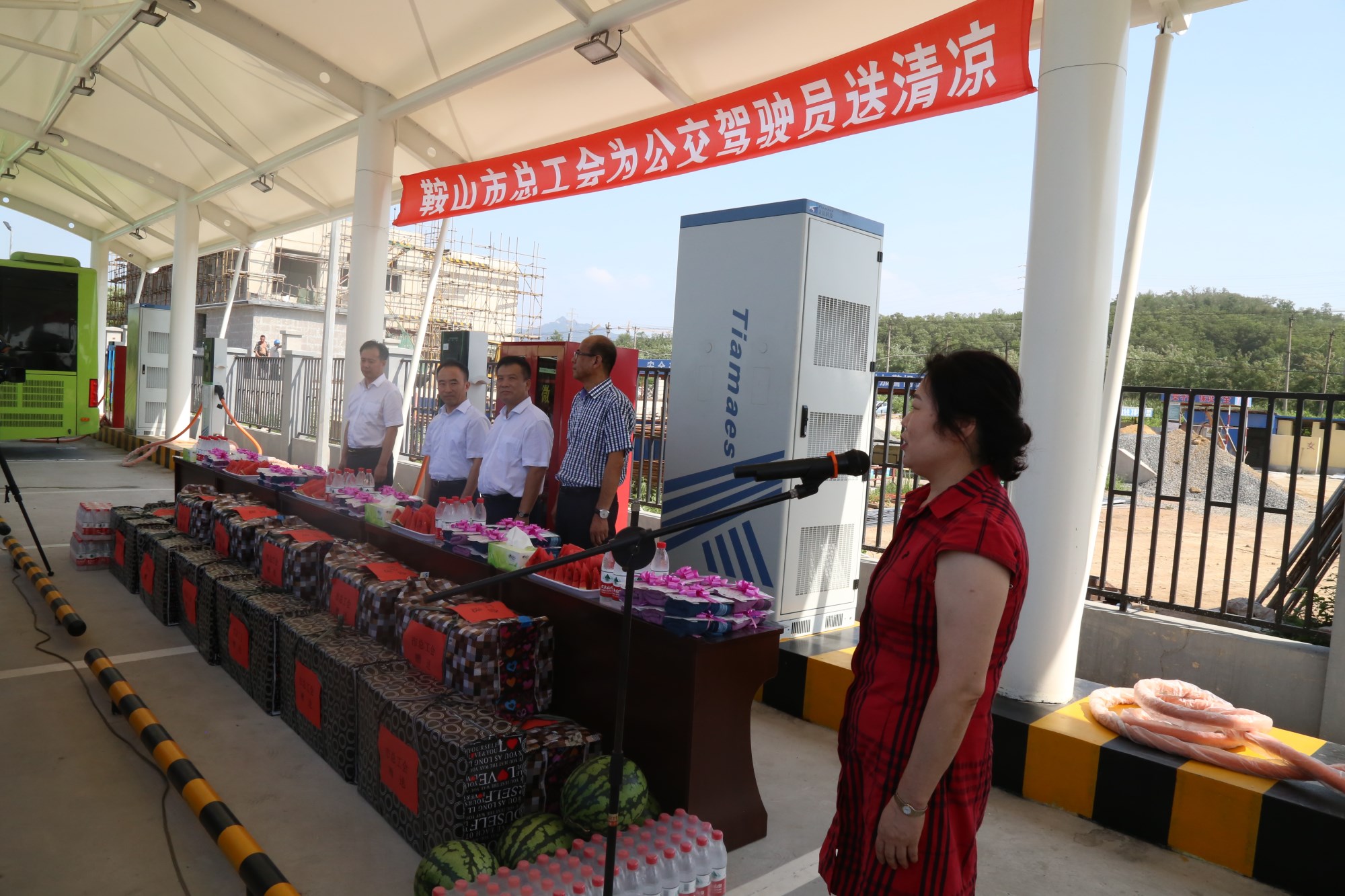 2018年8月1日下午,鞍山市總工會在交運(yùn)集團(tuán)第二汽車分公司216路終點(diǎn)站舉行了為公交一線駕駛員送清涼活動。鞍山市人大常委會副主任、市總工會主席解永孚;市總工會副主席李展程;市國資委黨委書記、主任顧洪新等領(lǐng)導(dǎo)來到216路調(diào)度室看望了交運(yùn)集團(tuán)一線駕駛員,為他們送去夏日里的清涼與工會組織的慰問。交運(yùn)集團(tuán)黨委書記、董事長羅玉艷;總經(jīng)理王春江;黨委副書記、紀(jì)委書記、工會主席金秀石出席了活動。活動中,交運(yùn)集團(tuán)黨委書記、董事長羅玉艷向市總工會領(lǐng)導(dǎo)介紹了企業(yè)生產(chǎn)運(yùn)營情況,并代表集團(tuán)職工向市總工會表示感謝。隨后,市總工會主席解永孚代表市總工會對高溫酷暑中仍堅守崗位、辛勤工作的交運(yùn)一線職工致以親切的問候,希望交運(yùn)集團(tuán)廣大職工繼續(xù)發(fā)揚(yáng)艱苦奮斗、愛崗敬業(yè)精神,注意防暑和行車安全,以更好的狀態(tài)投入到工作中服務(wù)好市民乘客,并將市總工會撥付的2萬元慰問金交到交運(yùn)集團(tuán)董事長手中。第二汽車分公司2路線駕駛員謝金紅在活動中代表一線駕駛員作了表態(tài)發(fā)言。最后,各級領(lǐng)導(dǎo)在現(xiàn)場親手將交運(yùn)集團(tuán)工會為一線職工準(zhǔn)備了冰袖、毛巾、西瓜、冰鎮(zhèn)礦泉水等慰問物資發(fā)到職工手中。
