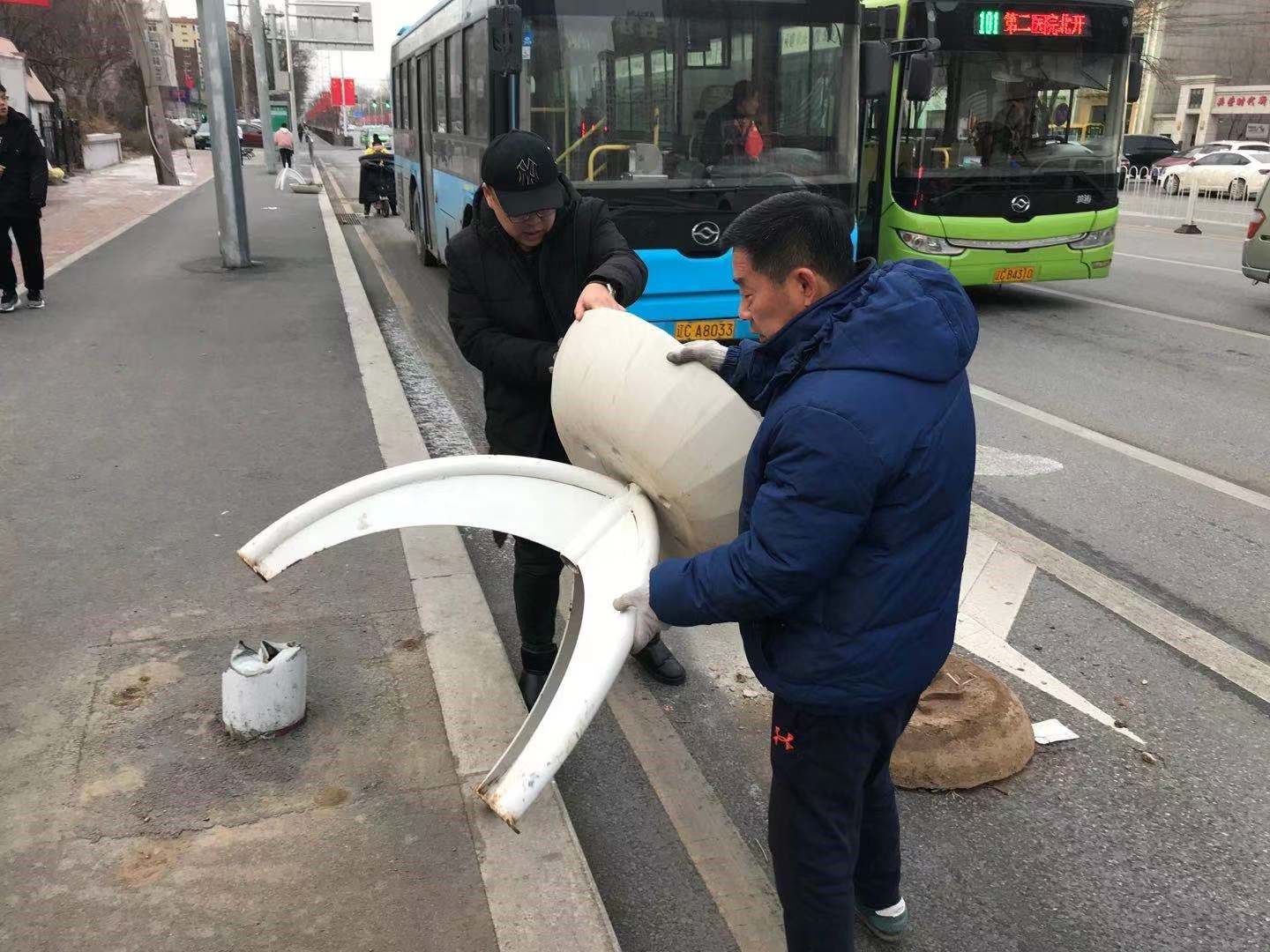 12月1日,鞍山交運集團第二汽車分公司客運六隊接到駕駛員反映,興盛路上有十余個立式花壇翻倒在路上嚴重影響交通,部分花壇還倒在了公交站亭附近,對公交車進站也形成障礙。接到消息后,客運六隊領導立即組織人員上線排查,在興盛路和民生路交界處,由南向北方向發(fā)現了翻倒的花壇,平均20米左右一個,共10余個,長度大約300米,有的還在快車道上,造成車輛通行困難,存在極大安全隱患。六隊領導馬上帶領大家一邊疏導車輛安全通行,一邊動手搬除障礙物,經過半個小時的努力,將花壇全部歸位,排除了道路交通安全隱患,確保該路段車輛正常的通行秩序。此舉得到了路過車輛司機揮手致意,及圍觀市民的點頭稱贊,他們的做法無形中也在寒冷的冬季給人們帶來一份溫暖和感動,更提升了交運集團服務于民的正能量形象,為他們點贊!